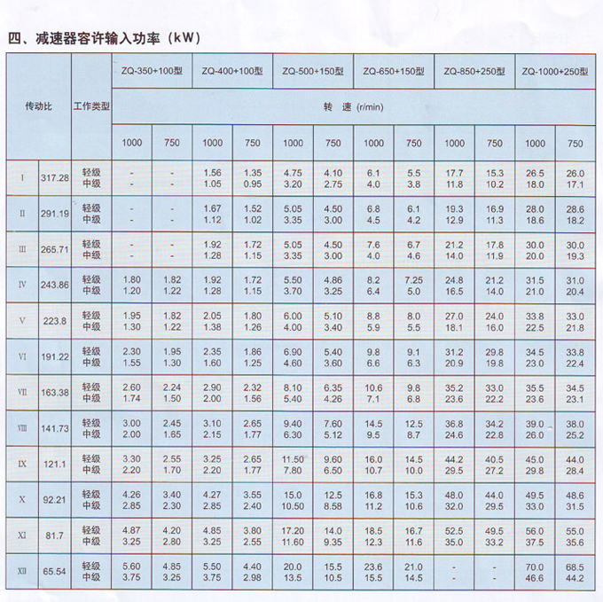 4) 減速器的***大公稱傳動比達到400,滿足了慢速起重機的要求。采用多級數,減少單級速比??衫_中心距,降低減速器整機高度,滿足起重機各機構的要求。