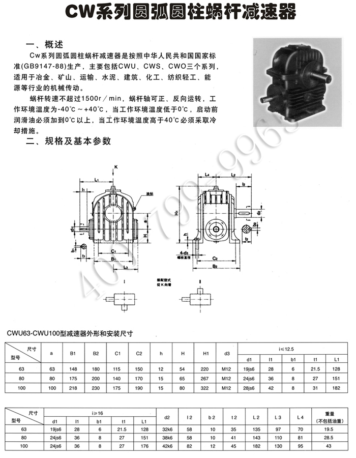 CW系列圓弧圓柱蝸桿減速器(GB9147-88)