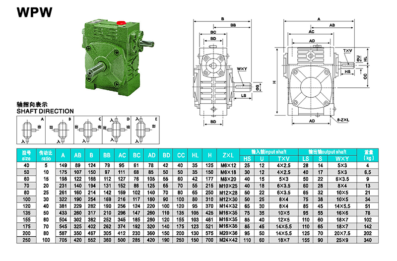 6、輸出、輸入軸位置方向有輸入軸在下及在上;輸出軸向上及向下;輸入軸向上及向下。