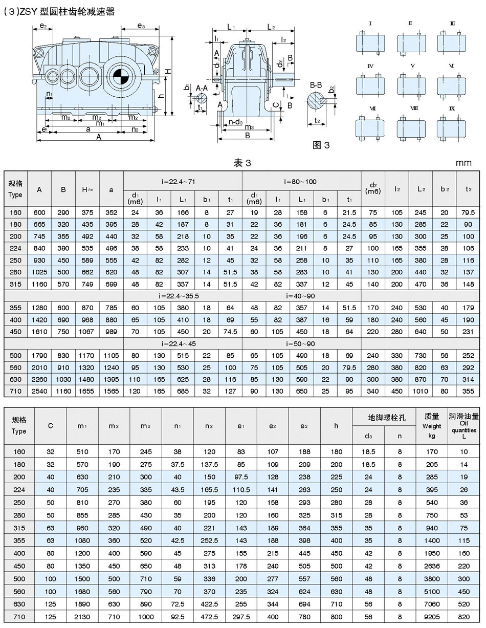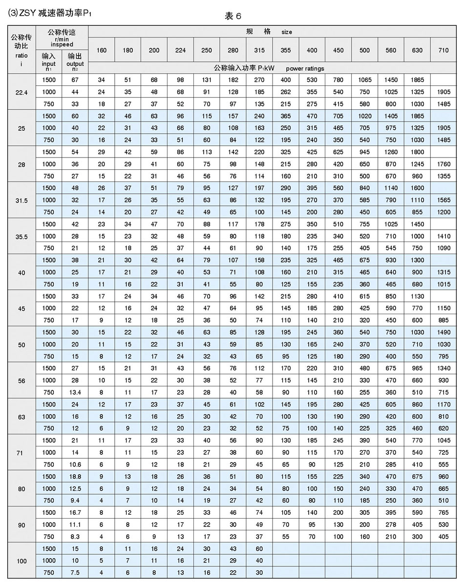 (1)減速比范圍寬:公稱速比單級為1.25~5.6、雙級為6.3~20、三級為22.4~100。