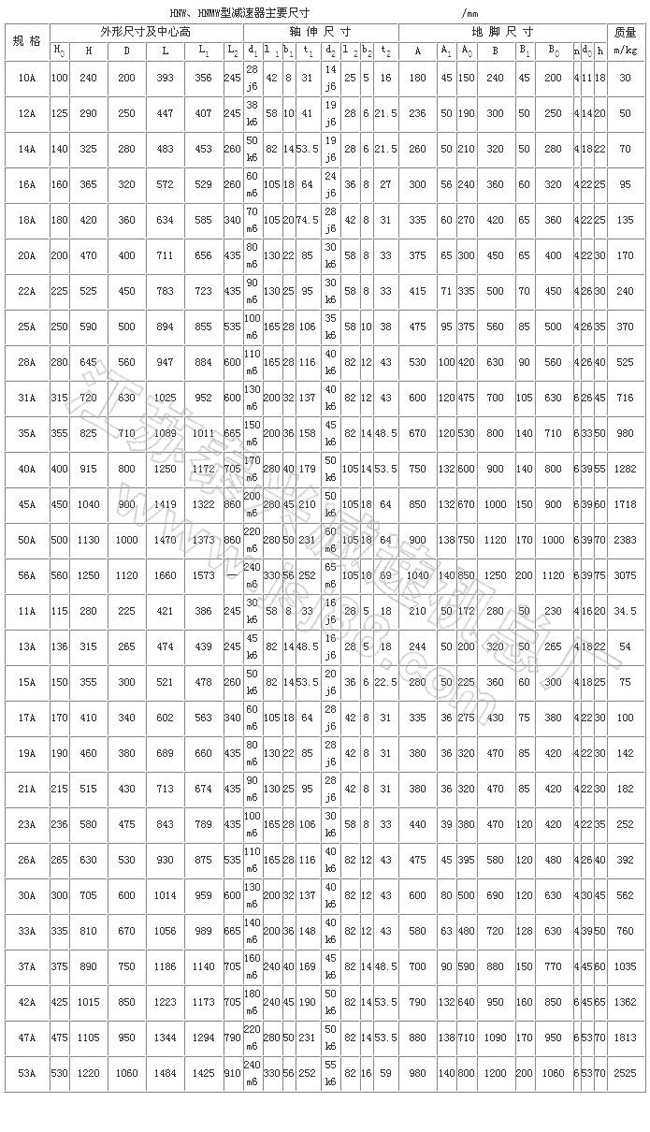 工作條件:輸入轉(zhuǎn)速28B型以下≤3000 r/min,40B型以下≤1800r/min,45B型以下≤1000r/min,Y型≤1500r/min;公稱轉(zhuǎn)矩2.107~588kN·m;傳遞功率0.25~2000kW;工作環(huán)境溫度為-40~45℃,低于0℃時(shí),啟動(dòng)前潤(rùn)滑油應(yīng)預(yù)熱,高于45℃時(shí)應(yīng)采取降溫措施。