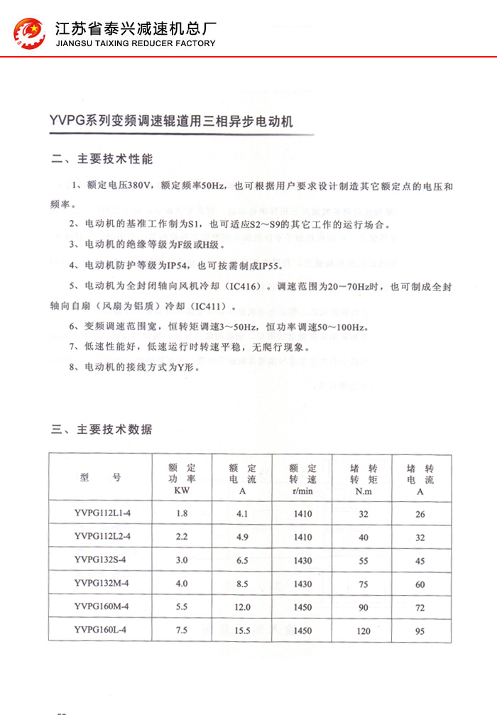 YVPG系列變頻調(diào)速輥道用三相異步電動(dòng)機(jī)51-53