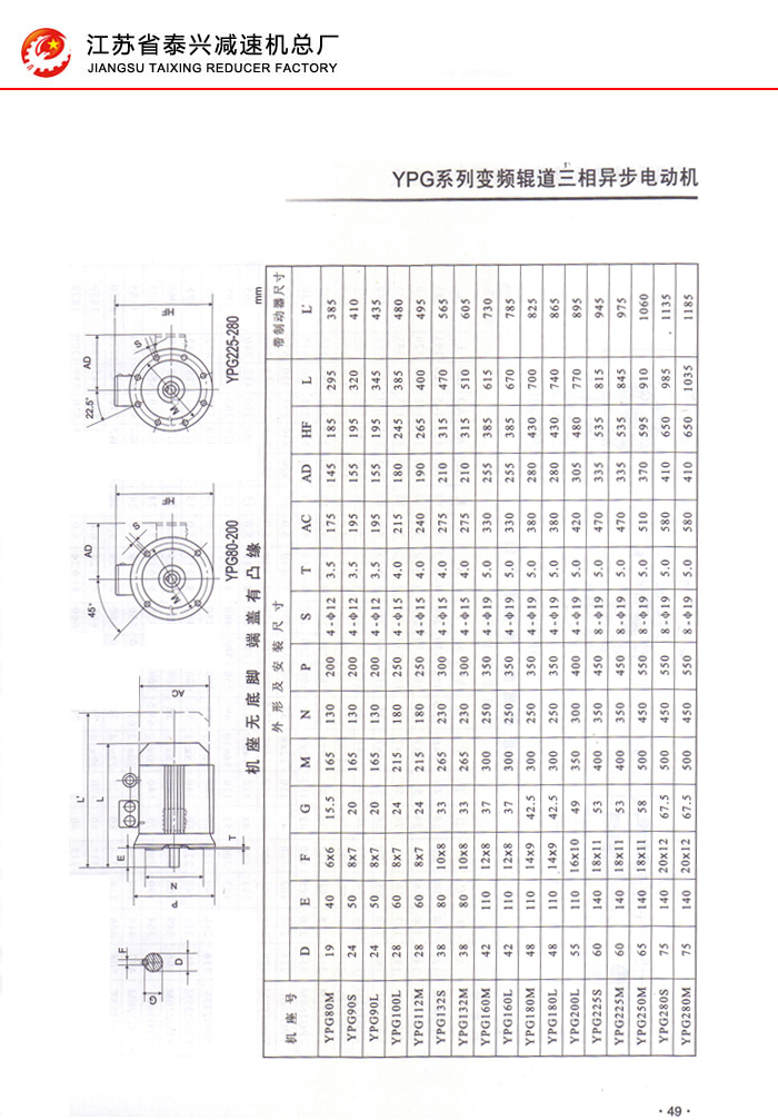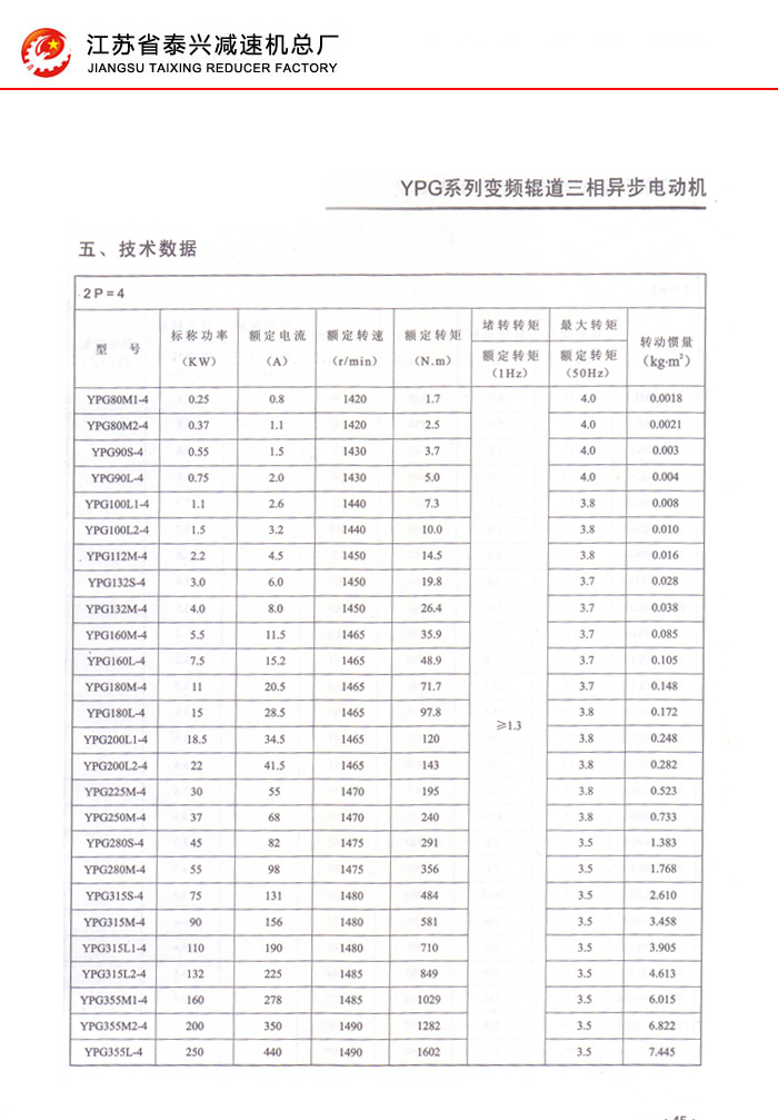 YPG系列變頻輥道三相異步電動(dòng)機(jī)44-50